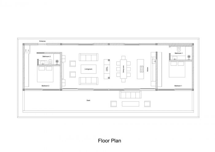 当我们在设计室内时,我们也同时结束了景观的设计,以确保从屋内有更好的观赏体验。我们设计了每一个小细节,如厨房、浴室、床、门、桌子、沙发、咖啡桌、衣柜、壁炉、橱柜、照明,以及它的所有功能和形式。最后一部分是设计房子的形式。我们需要为户外生活遮挡阳光,并在炎热的夏天保持房子的凉爽。