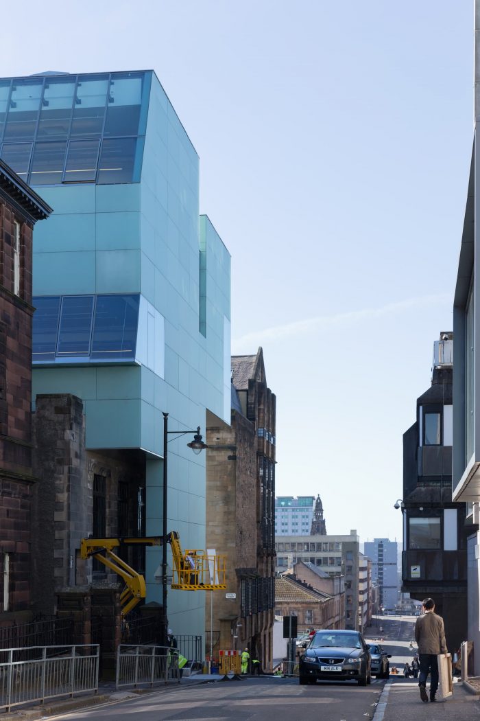 The Reid Building is in complementary contrast to Charles Rennie Mackintosh’s 1909 Glasgow School of Art – forging a symbiotic relation in which each structure heightens the integral qualities of the other. Thin translucent materiality in considered contrast to the masonry of the Mackintosh building – volumes of light that express the school’s activity in the urban fabric embodying a forward-looking life for the arts. Working simultaneously from the inside out – engaging the functional needs and psychological desires of the program – and the outside in – making connections to the city campus and relating to the Mackintosh building opposite – the design embodies the school’s aspirations in the city’s fabric.