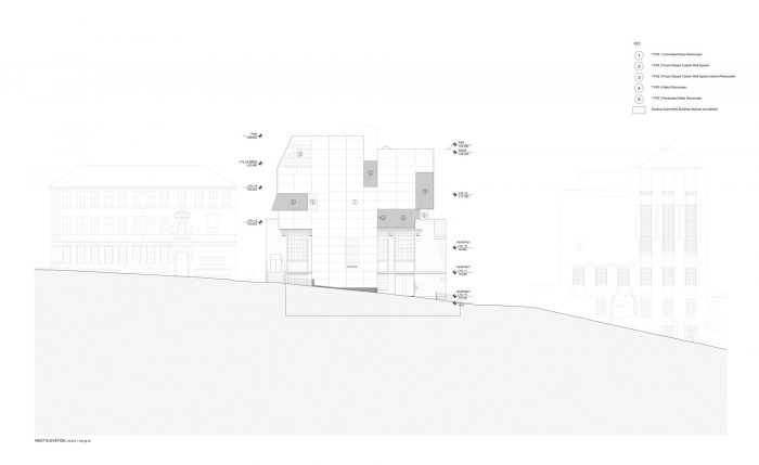 里德大楼与查尔斯-雷尼-麦金托什的1909年格拉斯哥艺术学院形成互补对比--形成一种共生关系,每个结构都加强了另一个结构的整体质量。薄薄的半透明材料与麦金托什建筑的砖石结构形成鲜明对比--光的体积表达了学校在城市结构中的活动,体现了艺术的前瞻性生活。该设计同时从内到外--满足项目的功能需求和心理渴望--和从外到内--与城市校园建立联系,并与对面的麦金托什建筑相联系--体现了学校在城市结构中的愿望。