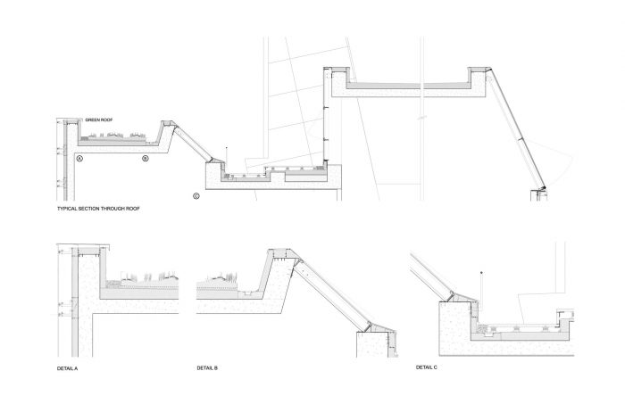 Along the South elevation, at the same height as the Mackintosh main studios, a landscape loggia in the form of a Machair gives the school an exterior social core open to the city. The natural vegetation with some stone work routes the water into a small recycling water pond which will reflect dappled sunlight onto the ceiling inside. A “Circuit of Connection” throughout the new Reid Building encourages the “creative abrasion” across and between departments that is central to the workings of the school. The open circuit of stepped ramps links all major spaces – lobby, exhibition space, project spaces, lecture theater, seminar rooms, studios, workshops, and green terraces for informal gatherings and exhibitions.