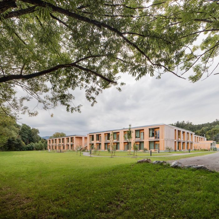 The interweavement of the building with the outside space has been assigned particular significance. The green and open space was designed with the typology of the care home in mind and is based on a sequence of gardens which differ in size and character. The gardens also form the passage into the park bordered by the Andritzbach to the east. A particularly attractive space for recreation has been created by designing a wooden platform that juts out over the water which, together with the manifold zones of a manageable scale inside and around the building, generates a familiar yet invigorating atmosphere.