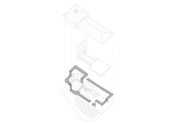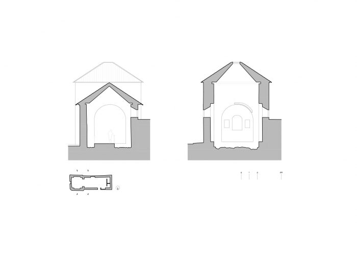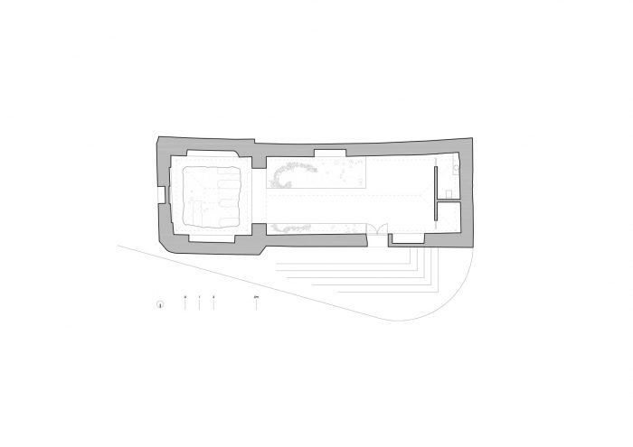随着光线的有序、清醒和宁静的进入,有可能恢复教堂建筑的超验维度。仿佛它是一个万神殿,一个垂直的椭圆被打开,使空间紧张,让 "来自上面的光 "进入。考虑到墓葬和坟墓的考古成分(从不同的考古挖掘中获得),新的干预措施需要恢复体积,并提供必要的东西来描述这个建筑作为一个宗教空间的特点。