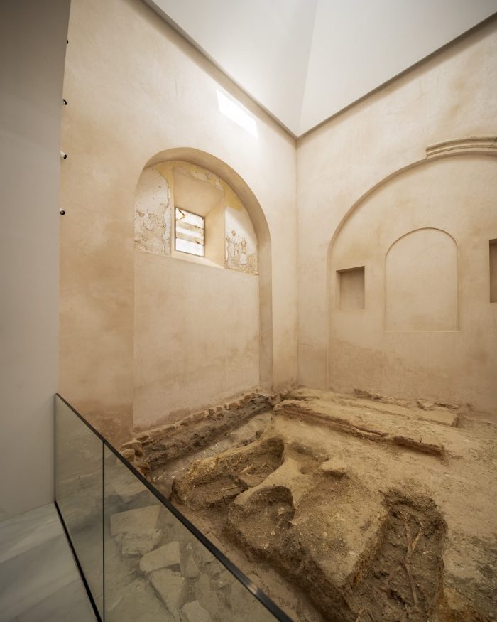 With the entry of light in an orderly, sober and serene way, it has been possible to recover the transcendental dimension of the architecture of the church. As if it were a pantheon, a vertical oculus has been opened that tenses the space and lets in “the light that comes from above”. Given the archaeological component of the place of burials and tombs (obtained from the different archaeological excavations), the new intervention needs to recover the volumetry and also provide what is necessary to characterize this architecture as that of a religious space.