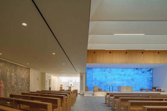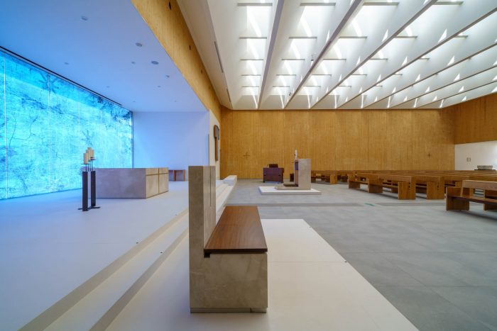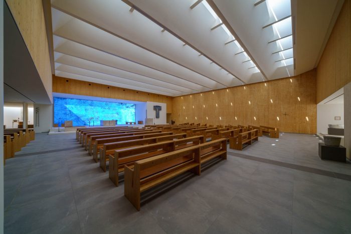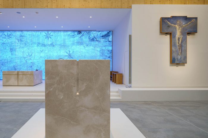 The further theme proposed, sustainability, has been achieved with the creation of a building that is highly efficient in energy-saving and maintenance. Built out of X-lam wooden panels, it is equipped with simple technologies to replace and treat primary air, powered by a 27 kW photovoltaic field installed on the roof. The system, hidden from view, with dynamic control of temperature and humidity, guarantees the best conditions of environmental comfort in the body of the church and the best conservation of the building envelope over time. This attention was required not only by the client and the CEI, but necessary in an integral ecology perspective pursued in every project.