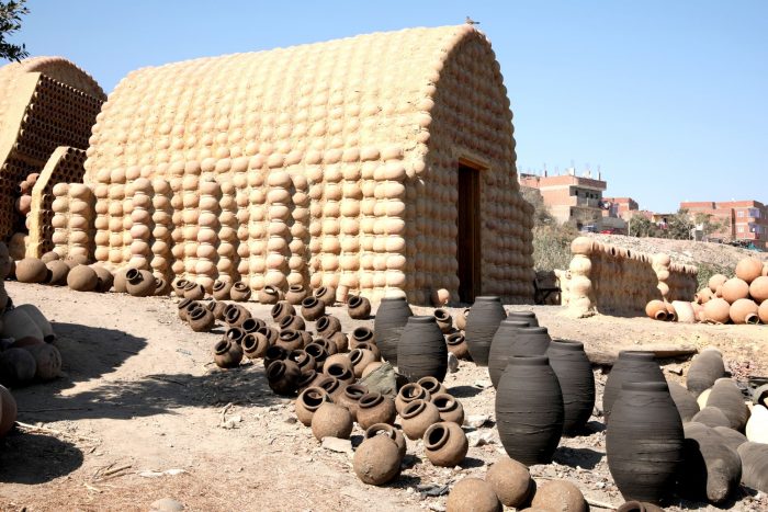 This intervention of reviving the Al-Nazlah area in Fayoum aims to create a pilot project in contexts of specificity. The valuable district incubates pottery workshops which have been producing special pots used for construction since Ancient Egyptian Civilization. Thus, the upgraded construction technique which enhanced the bonding material by gluing the pots together with the help of lab experiments maintained the traditional technique. Also, new forms have been introduced for roofing construction, which enabled the local community to explore a wider range of spans by introducing domes & vaults constructed by pots.