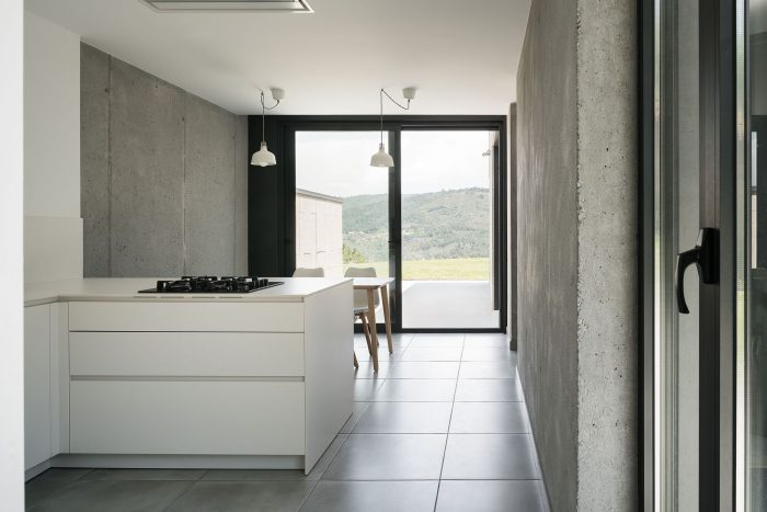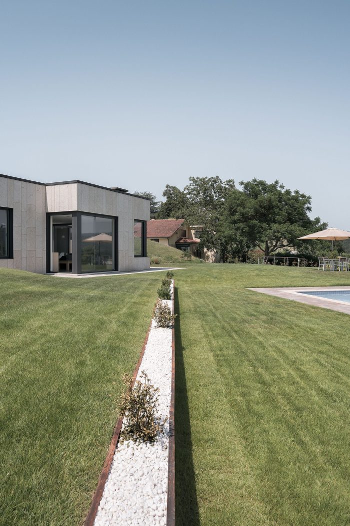 The house will be enjoyed differently depending on the time of the day and time of the year. In the hot summers of Ourense, life takes place inside the patio in the morning. In the afternoon, the kitchen terrace and the swimming pools are the most privileged places. In winters, the rooms are not shaded by the width of the patio, making the plot the most used outdoor space.