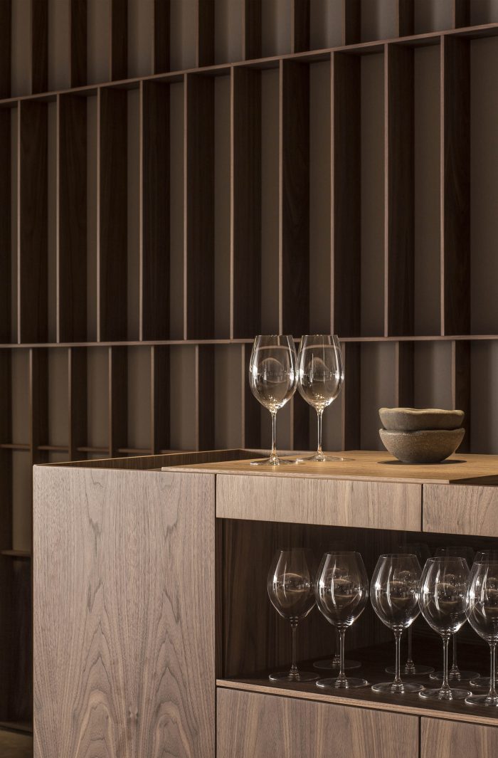 Another challenge for the studio has been the location of the kitchen, which, due to its large size, needed a strategic location. To find the balance it has been located on a stepped volume in which also the winery sits and accompanies to the enlargement of the area.