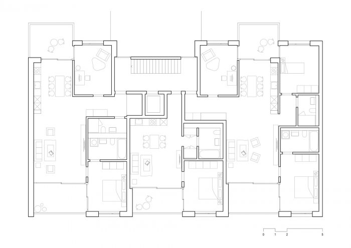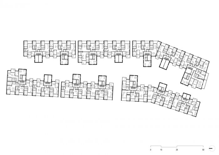 砖砌的体量成功地构建了住宅区,并创造了清晰的地址。东西方向的设计使楼层计划有连续的生活区,因此受益于宽阔的景观和社区庭院的品质。这使得一个新的、活泼的社区成为可能—这是该项目实施的主要目标。