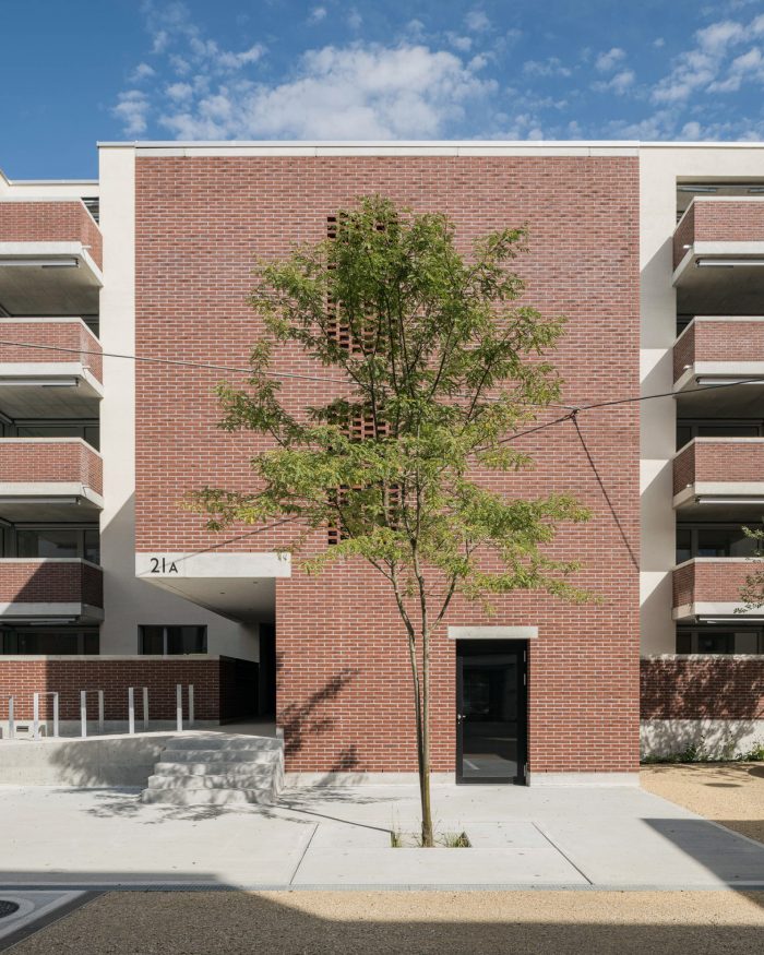 The brick volumes successfully structure the housing estate and create clear addresses. The east-west orientation allows floor plans to have continuous living areas and therefore benefit from both the wide landscape and the qualities of the neighborhood courtyard. This allows for a new, lively neighborhood–the primary goal in the implementation of the project.