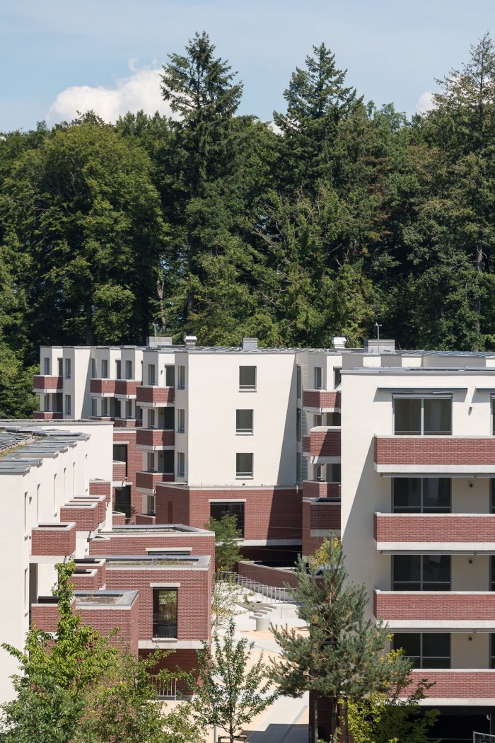 The 217 apartments of the Ried Baufeld B «Monarch» are directly derived from the logic of the masterplan: the buildings are surrounded by the green landscape on the outer edge with a contrasting dense courtyard towards the inside of the neighborhood.