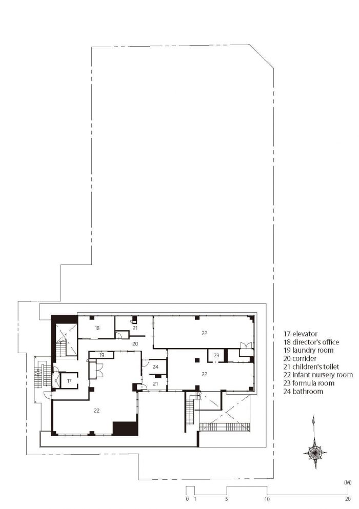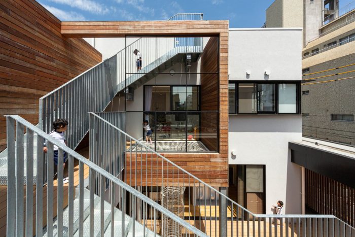 In addition, the toddler’s room on the second floor is connected to the infant’s room on the third floor with a climbing net so that communication among different ages will increase. Juniors grow up by admiring elders, and at the same time, elders take care of juniors and become conscious of themselves as an elder.