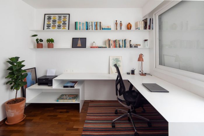 In addition to this architectural detail itself, the client already had very interesting books, engravings, and pictures, which facilitated the development of the spirit of the furniture and the new environment in general.