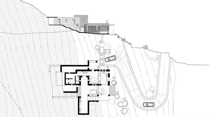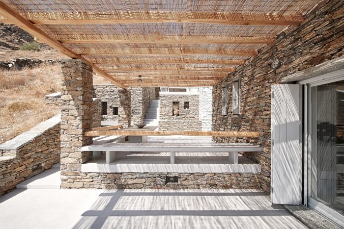 基克拉迪景观的经验是设计的主要关注点,通过建筑的空间演变和与壮观的土地的关系来表达。 这是通过被称为 "kotounto "的传统建筑方法来实现的,在岩石和建筑之间有一个干燥、无湿气的空间。通过这种方式,外部空间,一个连续的周边 "kotoundo "使建筑有时试图脱离岩石,有时又与它和解。