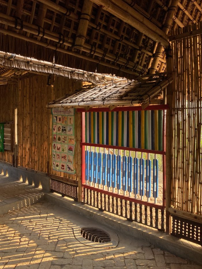 多年来拥有专业知识的老工匠们向年轻一代传授他们曾经拥有的技术。而年轻的罗辛亚人的灵魂则探索新的可能性。组成这个空间的元素是各种设计会议和实践研讨会的结果。例如,工匠们被要求通过设计一个小窗口来反映他们最喜欢的记忆/故事。自己的房子、捕鱼、大象、鸟、稻田和其他所有的记忆都被反映出来,现在一起站在中心,反映了一种记忆和团结的感觉。由于这个社区在自然材料方面有丰富的技能,所以在选择材料时很谨慎,以便在施工中熟悉技术。为了实现包容性和欢乐活动的目标,这些自然材料创造了从头开始制作建筑的范围。在施工过程中,鼓励大家自由思考和讨论,以确保精神健康。