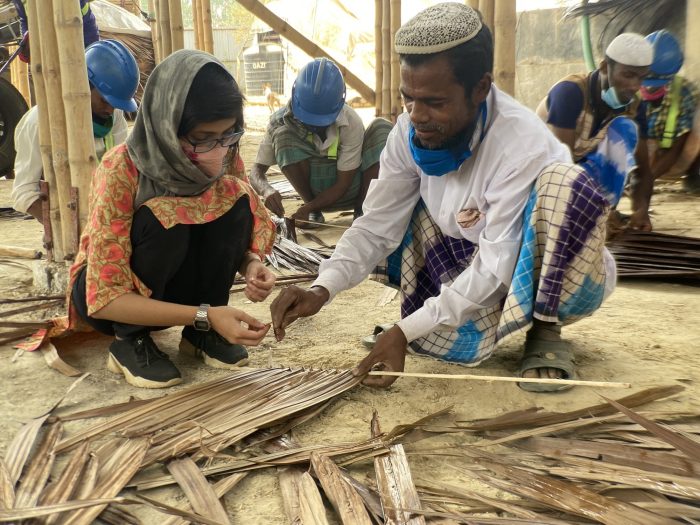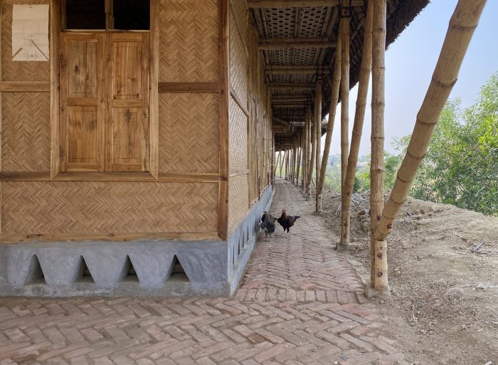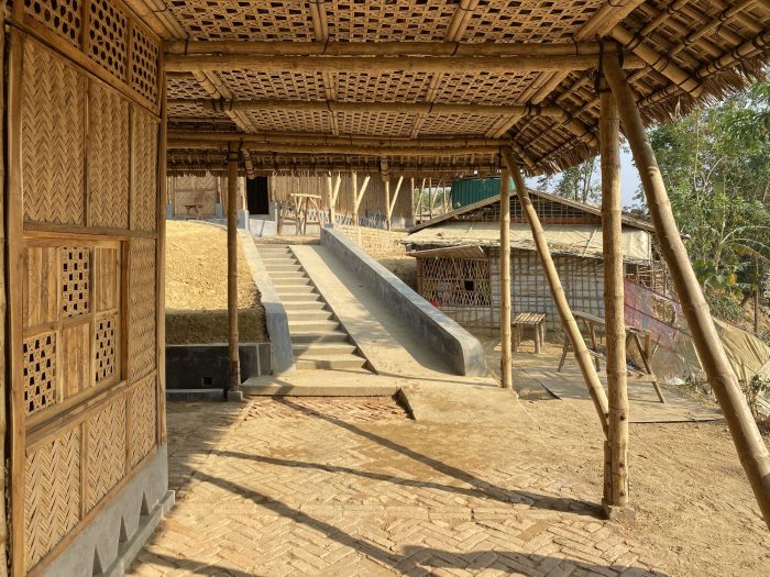 Despite the unsettlement, they have many stories, knowledge, and wisdom that creates positivity and care. ‘Rohingya Cultural Memory Centre’ tries to collect, preserve, and spread those knowledge & stories, to create goodwill among displaced communities even in the most unsettled situations. Rohingya artisans and community members came forward with their indigenous knowledge, techniques, ways of life, and stories that helped visualize an appropriate approach for designing the space. Nipa palm leaf (om pata/gol pata) pallets for roofing, various bamboo weaving techniques, traditional doors-windows-household patterns, and all other information resulted in a continuous process.