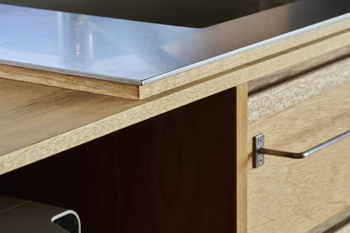 岛和凹室的角都是圆的,创造出一种柔和的感觉,突出了这个空间。接下来,东侧的窗台被重新编辑成一个大窗户,并沿着窗户布置了一个5.5米的厨房和工作区。厨房有一个宽敞的规划,充分利用了它的长度和深度,隐藏在岛后面的工作区创造了一个可以集中精力工作的环境,而不用担心被人窥视。在一个宽敞的空间里,我们用岛屿、固定装置和家具创造了许多可以停留的地方。希望你能健康长寿。