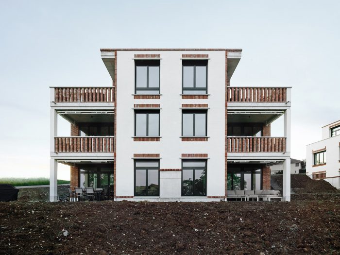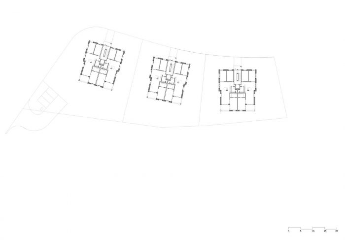 On the Rootacker in Stetten, a development structure is proposed that corresponds to the existing neighborhood of single-family houses. The sloping site is occupied by three apartment buildings, which follow the natural course of the terrain. Although the desired density is achieved, the gradation leaves enough space between the buildings and allows an unobstructed view over the valley. Each of the three houses includes five bright flats with different sizes and floor plans. They all have in common an orientation towards the view and a fluid sequence of rooms.