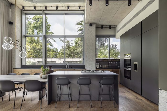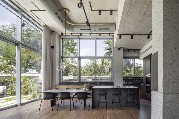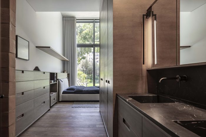In this project, we searched for a balance between the very commercial language of the given residential block to the land and to the beautiful trees just outside the site and on-site. The choice of materials was specially selected, involving a combination of hand-crafted materials, raw materials, and hard-lined details which together always add depth to design.