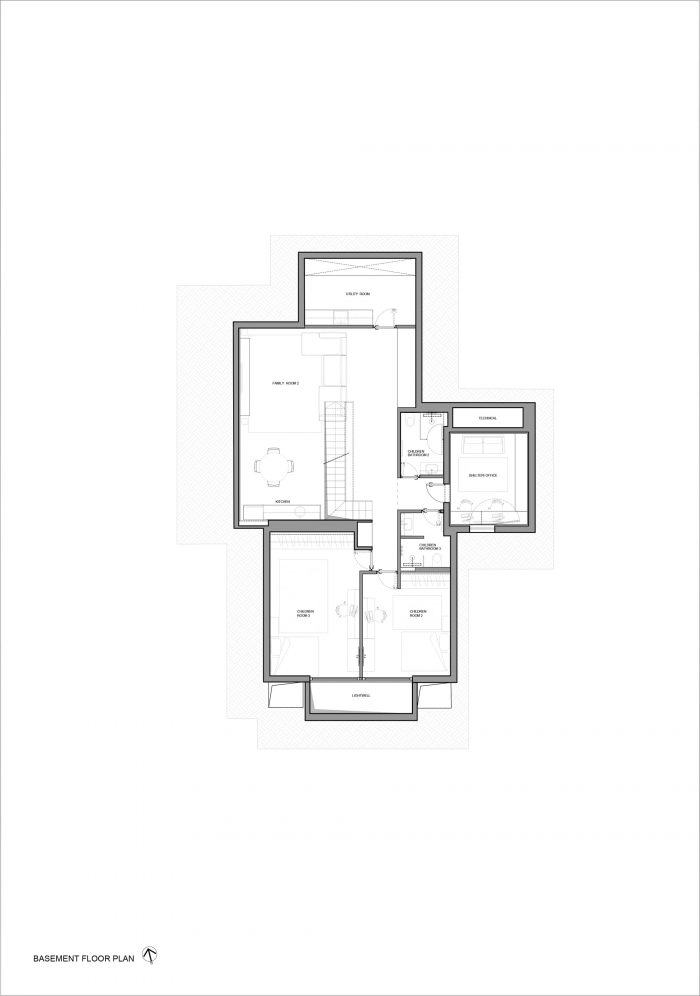 The ground floor plan is made of the main living space, the master suite that faces the garden, and the bedrooms of the two younger children. The lower ground space is mainly intended for the two older children and the utility.