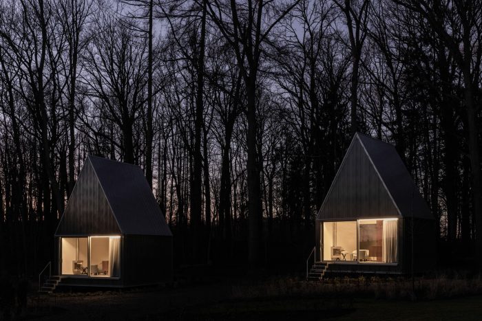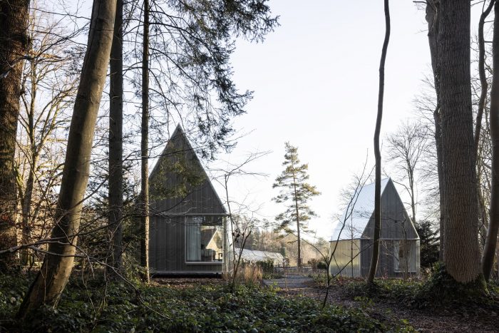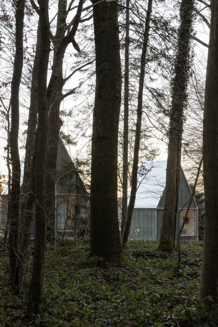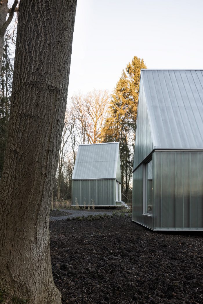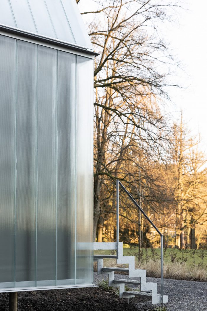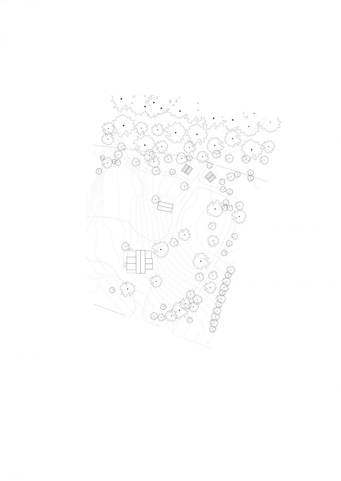On the heights of the property, the units are accessible from the existing pathway. The accommodations reinforce the presence of the greenhouse and learn from it, both by using it as a programmatic complement for the guesthouses and by reinterpreting the constructional system.