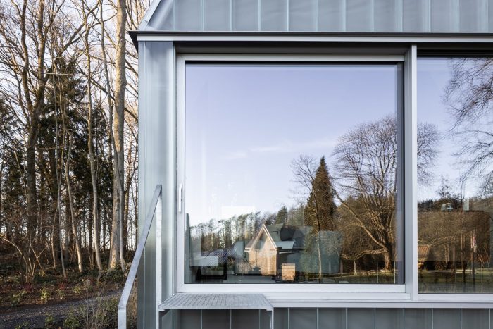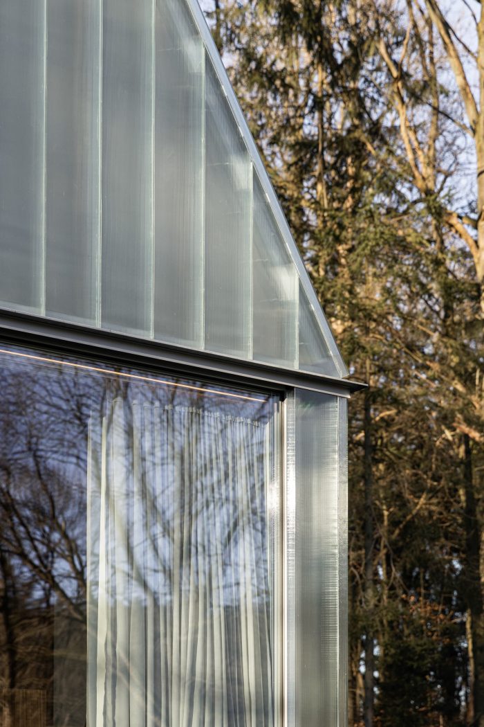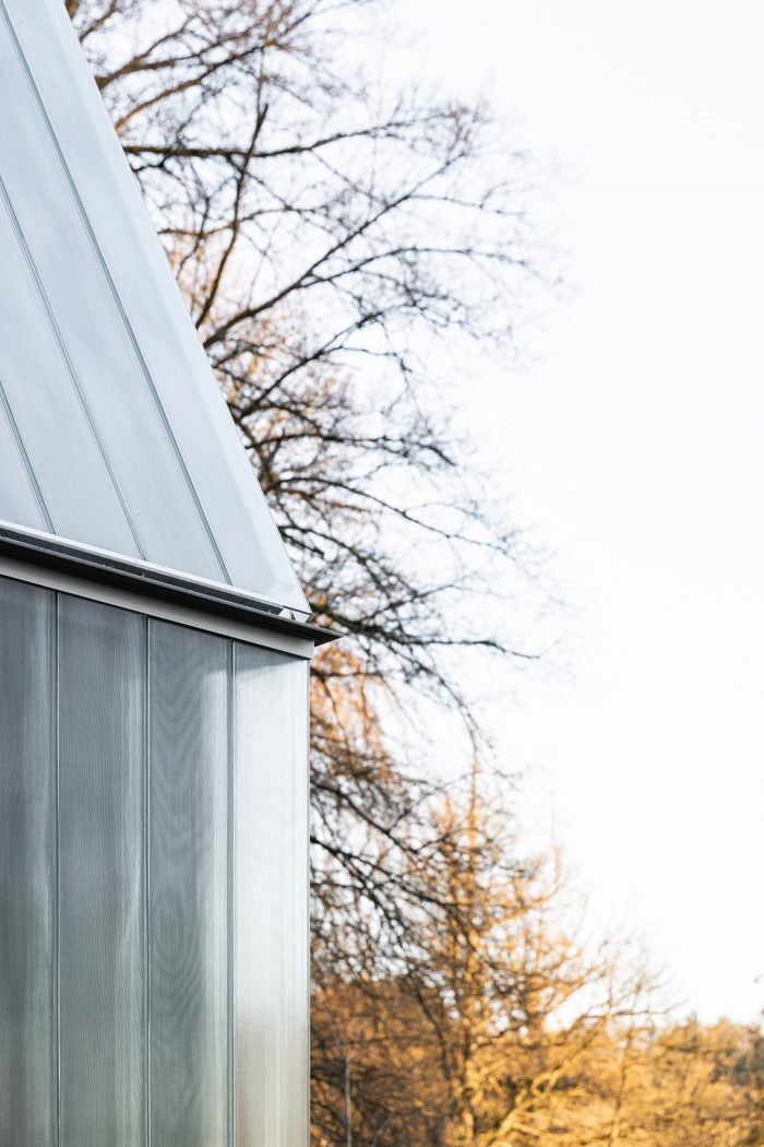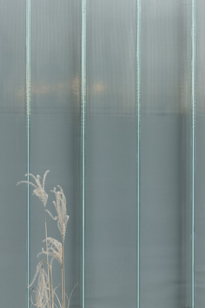 The materiality of the façade echoes the former presence : the profiled textured U-glass establishes a dialogue through its reflection and proportions both with the existing utilitarian structure and the surrounding. The details of the units build on the inherent qualities of the prefabricated u-shaped glass elements, using their three-dimensional geometry to negotiate the corner details in an innovative proposal.
