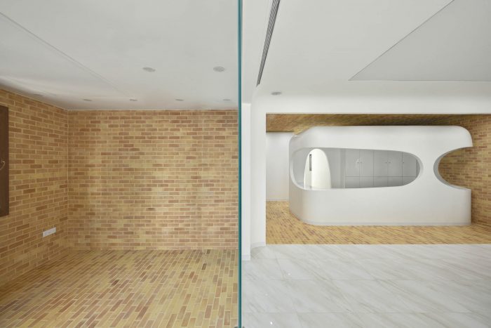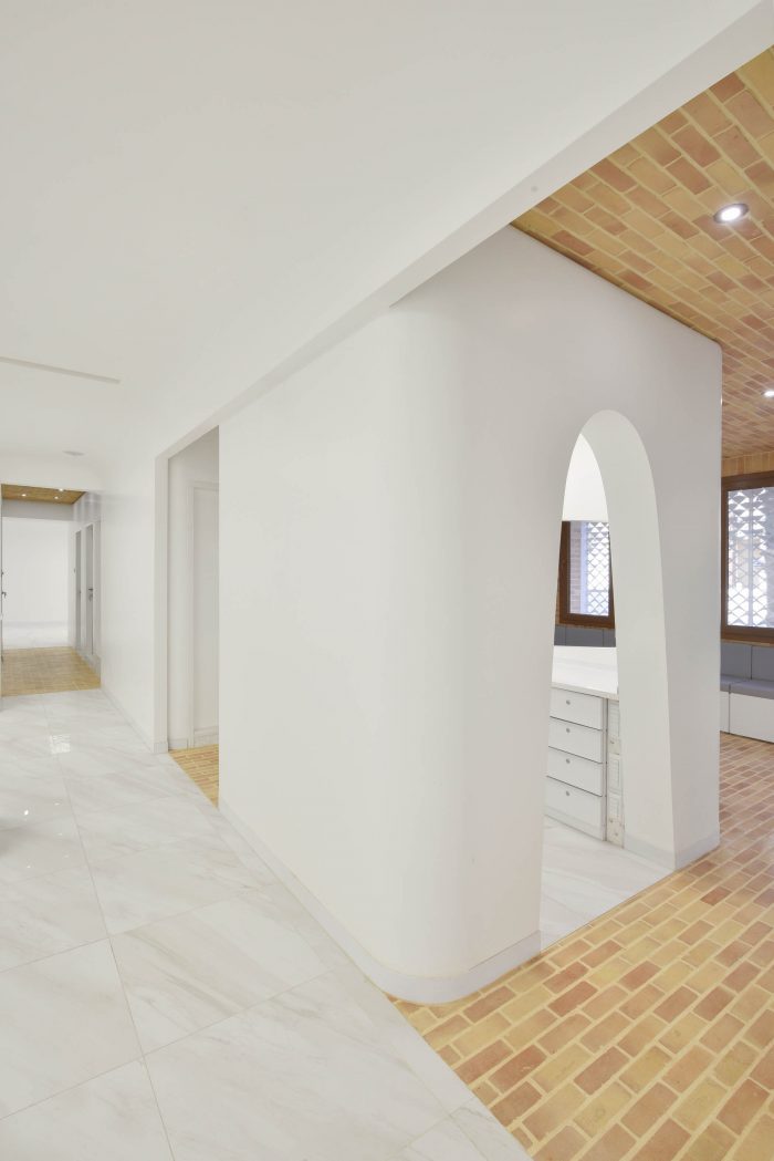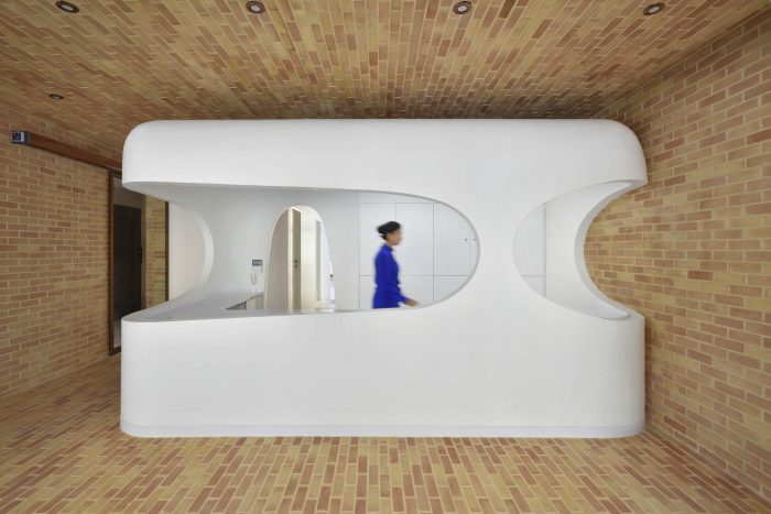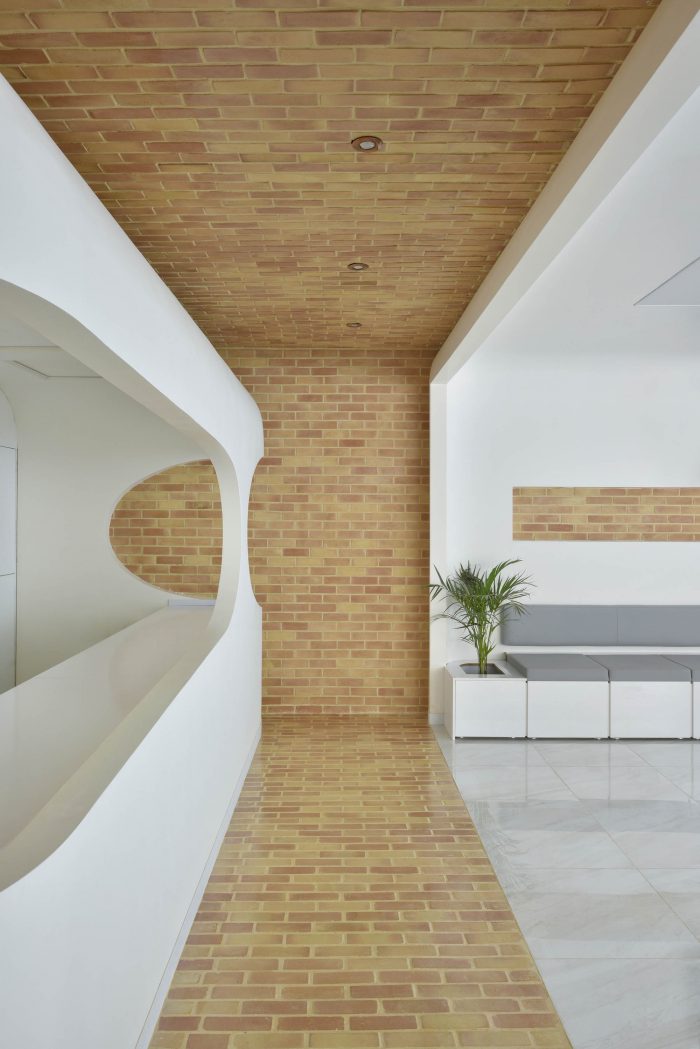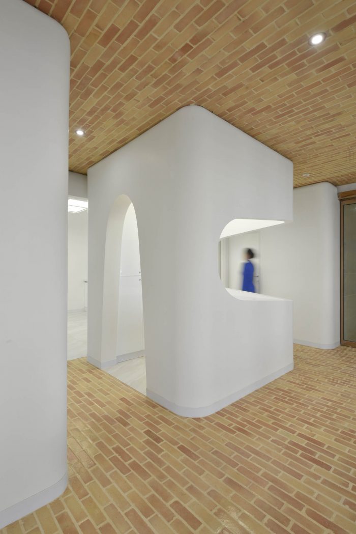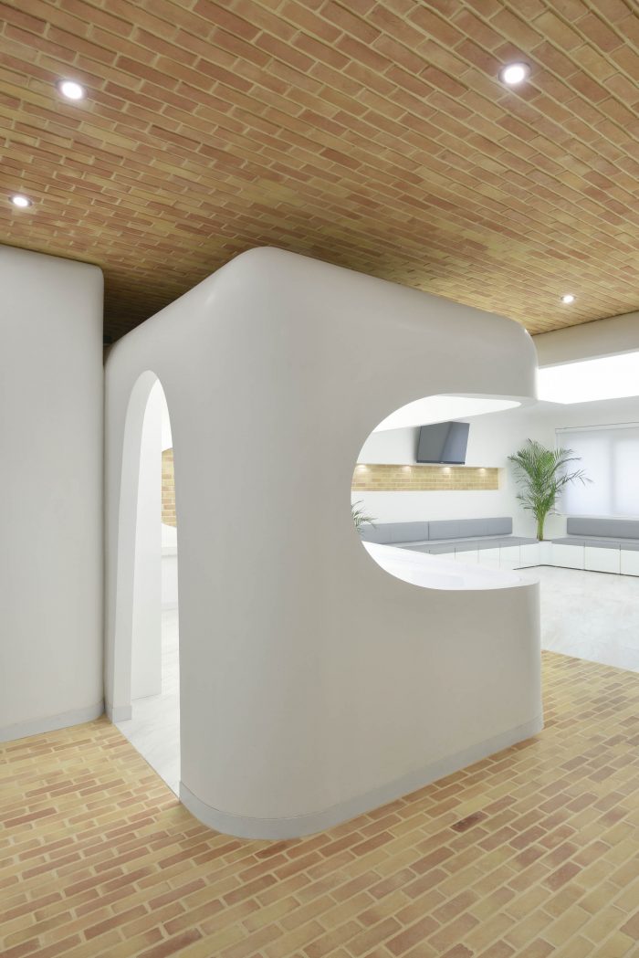 According to the new scenario, each room was placed in the heart of a brick space in the form of white boxes which represented the attached parts with their modern appearance and had soft and rounded corners inside and out. Depending on the function of the related space and box, the degree of roundedness varied so that non-functional spaces in a medical office such as reception and waiting room experienced the highest amount of roundedness and functional spaces such as surgery experienced the least amount of roundedness.