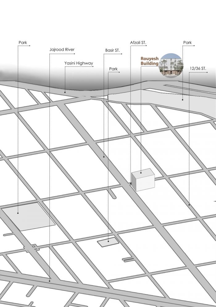 The initial design idea of this project started from this point. With a residential use, this building was located in one of the eastern areas of Tehran at a completely residential area. The employers wanted to change the current use of the building to medical use. They wanted to build a new therapeutic building, completely different from the texture of the area. Nevertheless, we knew that to design a building, we had to consider it as a part of a whole and give it the opportunity to belong to its surroundings and ultimately to the city. Therefore, instead of destruction of the existing building, we decided to preserve its overall structure and part of its residential identity and give it a new life by presenting a new design.