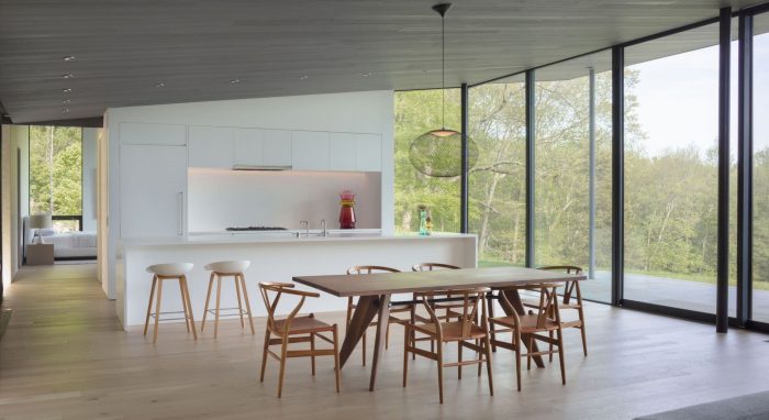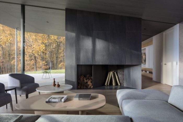 At the Roxbury House, indoor spaces and outdoor courtyards oscillate at different scales with long axial views through the house, linking rooms with beautiful layers of materials and light while culminating in distant views to the landscape.