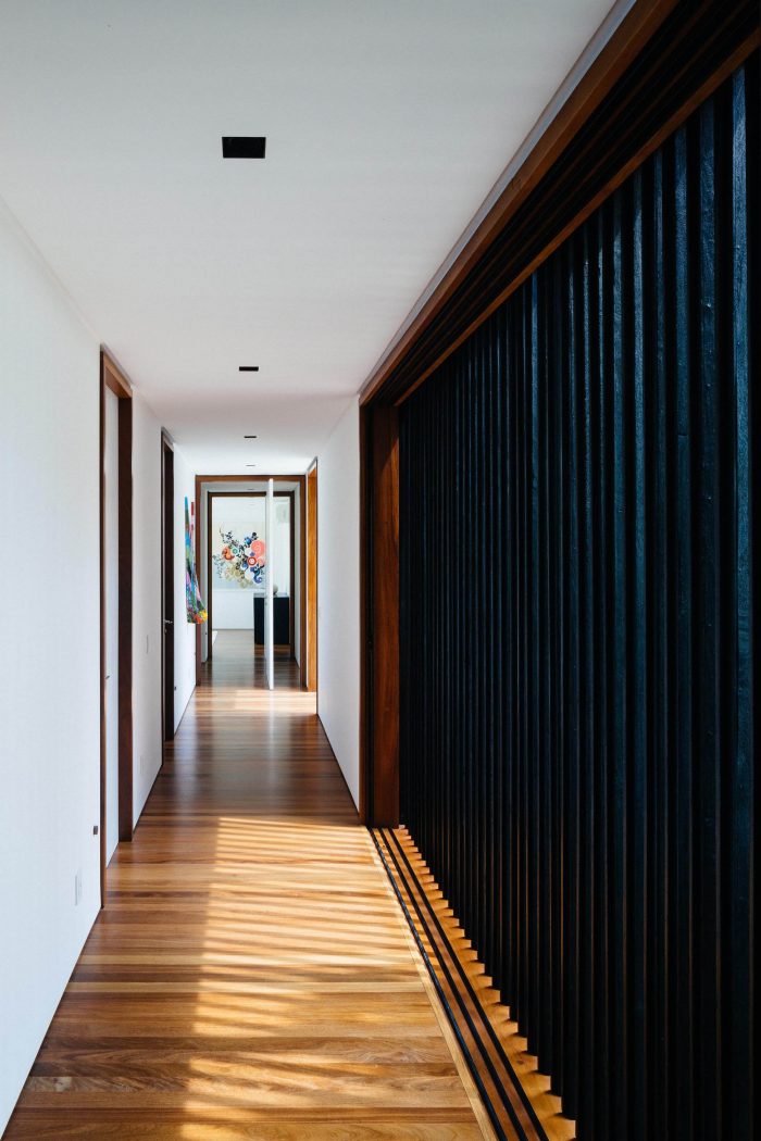 在通道层,社交和私密区域被划分为两个比例相似的矩形体量。这些体块平行排列,但相互抵消。