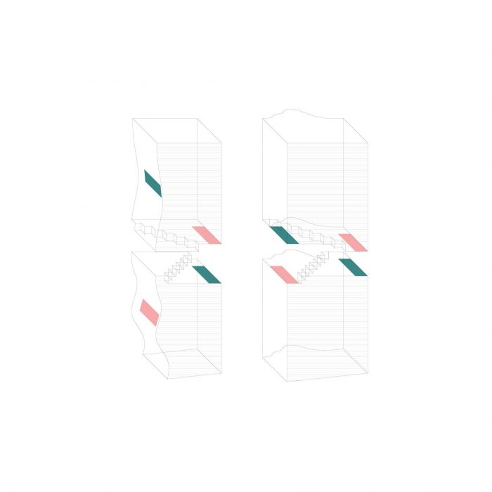 A bourgeois 19th-century single-family house was to be divided into a series of identical studio apartments: four living spaces, some circulation areas, and a private backyard. The project happens within a given system of constraints, aiming at an unexpected complexity, finding a certain interest within a very banal set of programs.