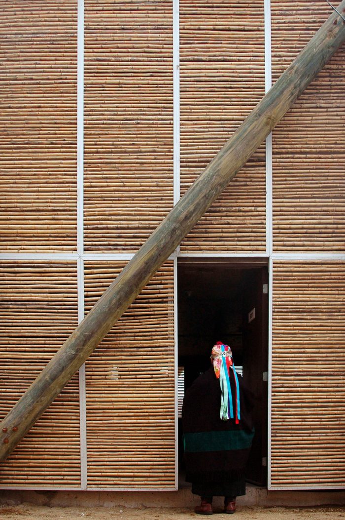 马普切在西班牙语中的意思是 "大地之人"。他们最初居住在该国的中南部,在那里,与自然和谐相处,主要发展农业。与安第斯山脉中北部或中美洲等其他前哥伦布文化不同,马普切人并不是传统意义上的建筑家。他们的神圣空间不是寺庙,而是山林和河流...。他们的庇护所是鲁卡,在许多情况下,仍然是由树枝和树干的轻型结构形成的短暂空间。这些,融入到景观中,随着时间的推移而退化,伴随着时间的循环性质而回归土地。这足以理解马普切文化适应当代城市现实的努力。