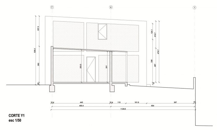 As a construction technique, the artisanal tradition of brick and reinforced concrete frame was used, expressing the correspondence between appearance and structural nature of the project. The diagonal made of impregnated pine wood that characterizes the main and rear facades is a structural element that braces the side walls in case of an earthquake. A double skin of "cañada de coligüe" covers the wall and windows of these facades. The minimum distance between the rods allows the passage of light filtered inside, while at the same time displaying the tradition that inspired the project.