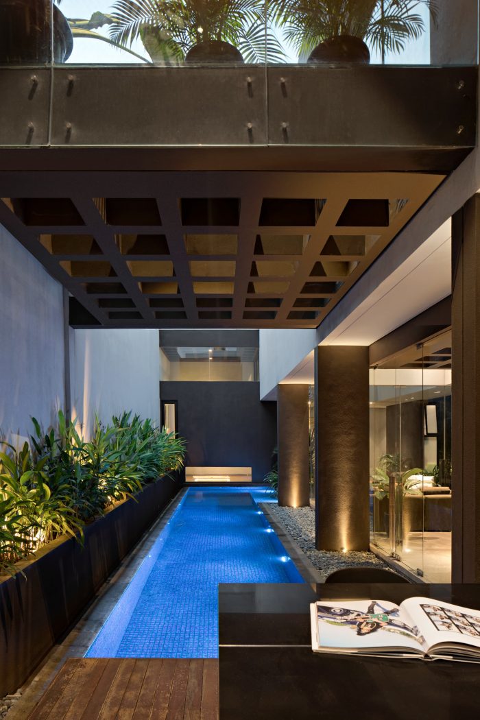 位于中心位置的院子在主屋和亭子之间起到了中介作用,成为两者之间的一个间隔空间。亭子--从主屋中获得的正式品质--被视为一个独立的体量。然而,用玻璃门打开和关闭生活区的灵活选择,使其与游泳池、庭院和开放的天空形成了一种沉浸式的联系,并满足了扩展空间的需要。亭子的执行是为了激活空间,作为客人的卧室和浴室,有一个祈祷室,可以每天访问。两层楼的巨大能量与水的反射和柔和的声音形成对比。在柔和的表面上,一种复杂的粗糙感被赞美,这是由光、影和反射的变化提供的。无论是完全开放的空间还是独立的空间,这些空间的连接都散发着旺盛的生命力。Rumah RifBagus提供了一个宁静的避难所,其灵感来自于作为家庭住所的自然范围。