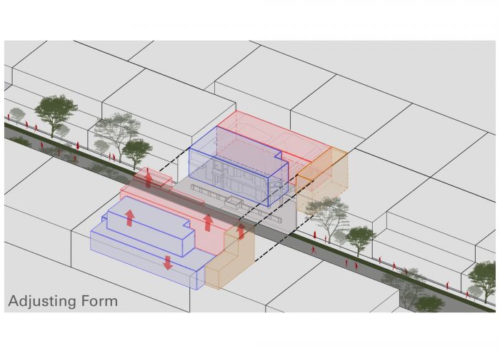 From the street, this house appears modest in its mass combination, materiality, and color. However, beneath the surface lies a series of built spaces designed to be distinctive in their function yet rich in experiences, especially in the combination with the natural elements. The house is split into two distinct volumes: a muted white horizontal upper rectangle mass with a modern colonnade facade and the lower mass that’s more dominated by the implication of the brown waffle structure canopy. The brown waffle as the main architectural feature is used throughout, binding the spaces and reinforcing a sense of flow. It is adding warmth through its natural color along the way. The spaces swell and expand through waffle pattern integration: it syncs with the interior ceiling, skylight, master balcony floor, and canopy structure. Tactical waffle placement in the interior also visually amplifies dimensions and frames natural light all over from the skylight above. Most notably, the sunlight that comes through the foliage amidst a plethora of surrounding trees. However, the rigid rectangular forms throughout the house are softened via the inclusion of greenery, the illusion of indoor-outdoor, and the double-height ceilings.