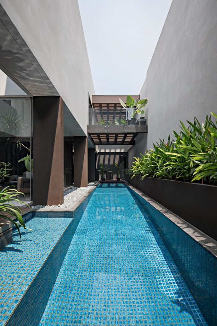 Renovated Abode - The challenge in Rumah RifBagus was transforming the traditional characteristic houses with typical layouts into a more pragmatic home for a family of six and a pavilion for guests and other family-friendly amenities. The existing site consists of two separated old houses with different sizes and ratios that needed to be stitched together. Given the main concern of this young family is to create a flexible space to accommodate family gatherings, the mass is transformed and combined into two long masses with a sense of unity. The original structure and a few parts of the house were respectfully upgraded and restored with a new openness. Altogether, this house includes living and dining spaces, a study room, a music and cinema room, a kitchen one master bedroom, and a bathroom with four children's bedrooms with two shared bathrooms. The backyard is fully utilized as a swimming pool that flows into the courtyard as an oasis of the house. Programmatic requirements are zoned for an efficient structure and adjacencies.