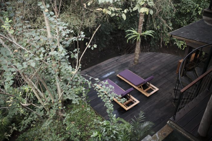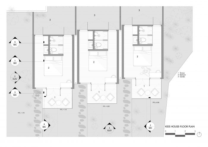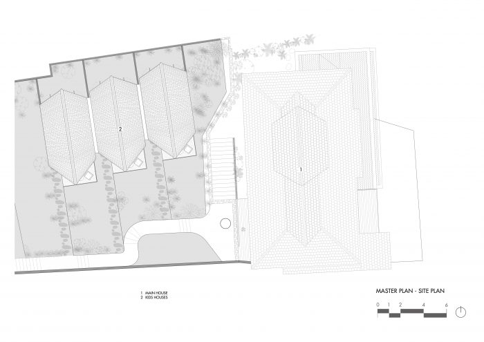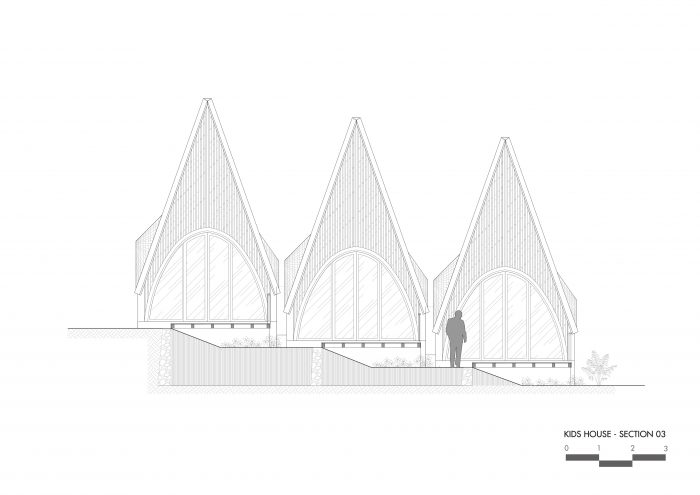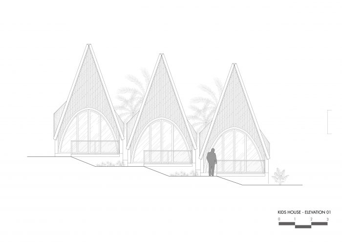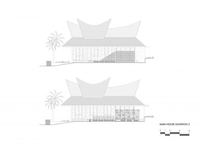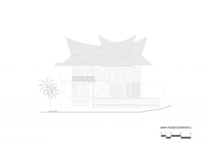 建筑群包括一座主屋和三座客房。受苏门答腊建筑的启发,客房采用了尖屋顶和拱形窗户,以平衡这些动态形式。玻璃和宽大悬臂的巧妙使用有助于调节室内气候,既能防雨防晒,又能保持自然采光。