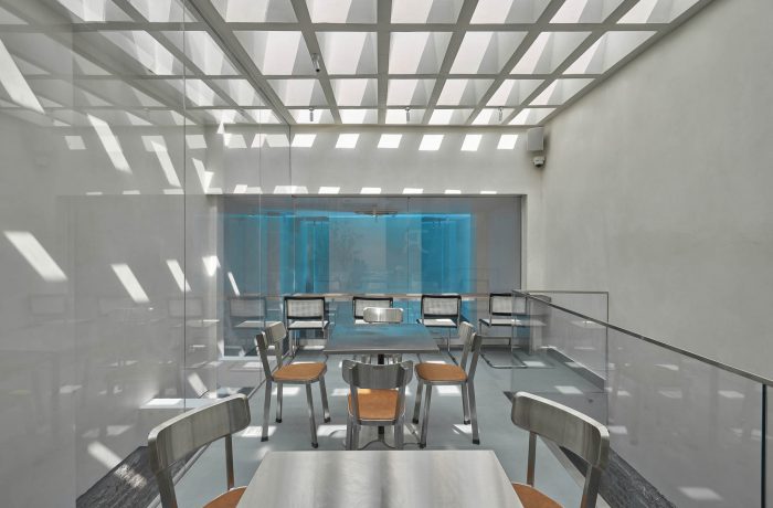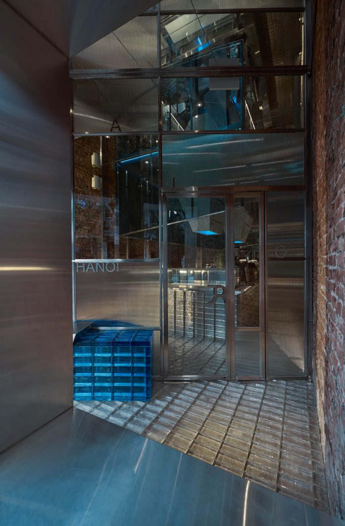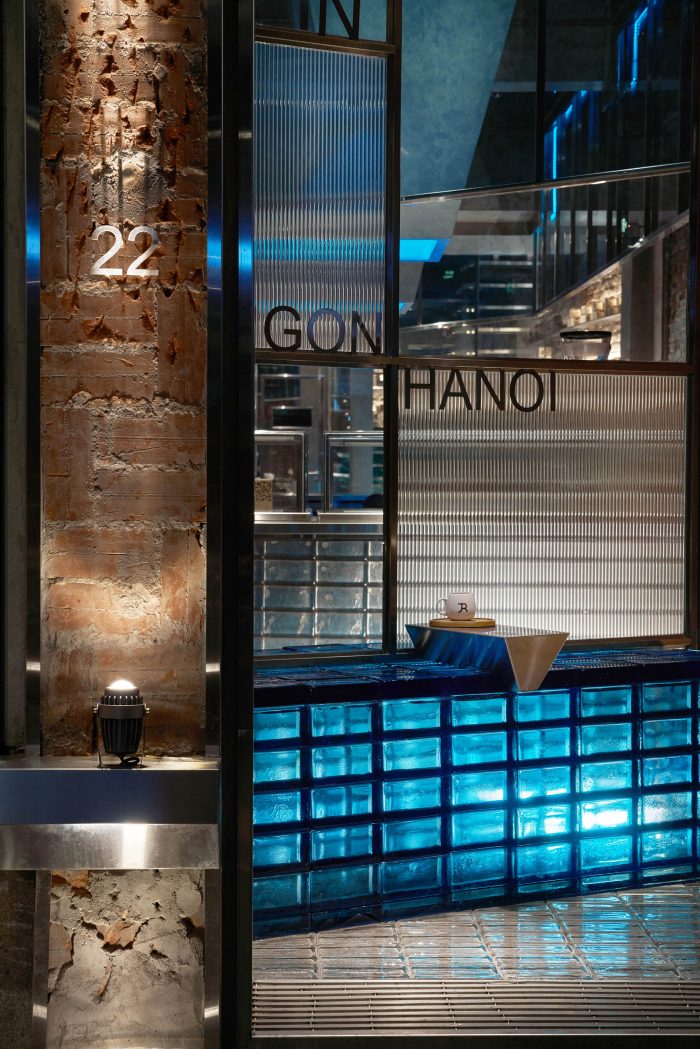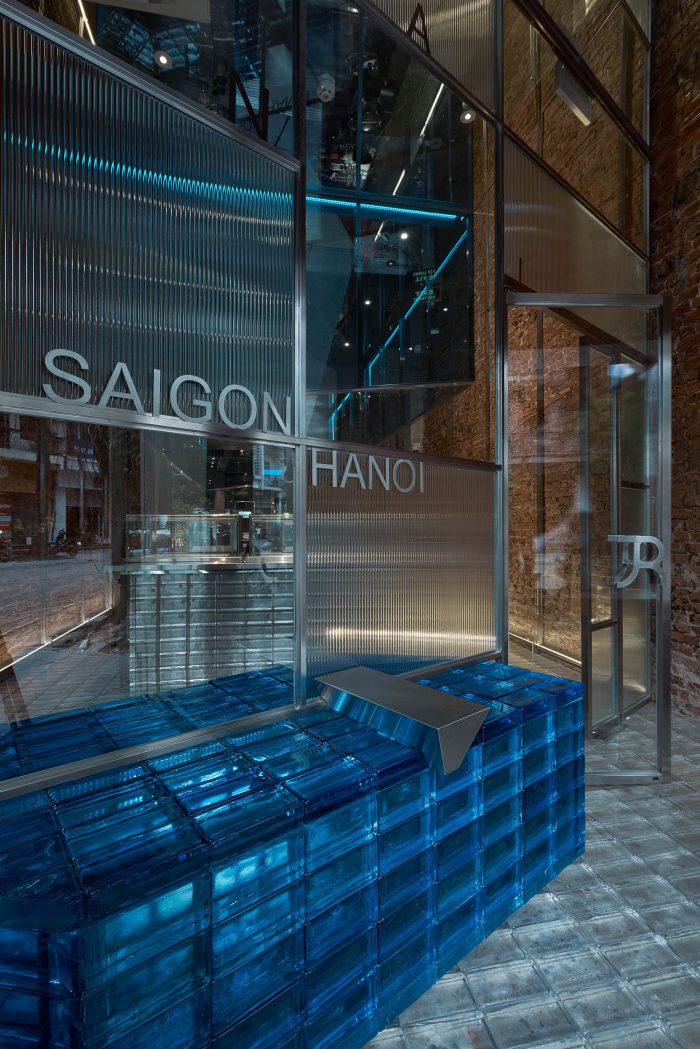There are many ways to preserve a legacy value but the Red5 team chose to freeze it. Why do we call it FROZEN? Imagine the symbol of the iceberg, spreading cold air, freezing corners, and spaces inside the ancient house. We used the method of integrating square cubes, slanted arrays, or diagonal cuts combined with glass materials, glass bricks with a blue light tone to create a sense of movement and spread of the freezing.