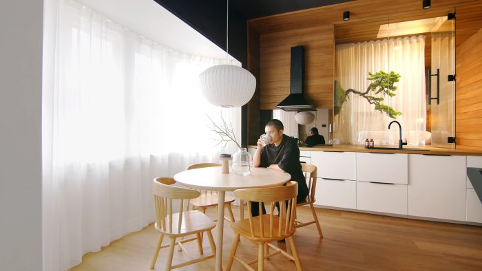 在Dform Projects公司的Dan Yang重新设计之前,该楼层的规划并不是特别周全......没有很多华丽的曼利阳光进入这个52平方米的公寓。这一点,加上复杂的管道,给建筑师带来了挑战,需要一个创造性的设计方案。建筑师拆除了卧室的墙,让自然光更深入地进入公寓,并将浴室移到远离入口的地方。他们还打通了厨房、客厅和餐厅的空间,将它们合并成一个更大的重叠区域。
