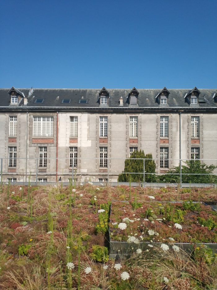 The 3rd face is the green roof of the building that recreates the garden present in the hospital before the project. It contributes to water retention and preserves biodiversity, offering a space accessible to birds and insects.
