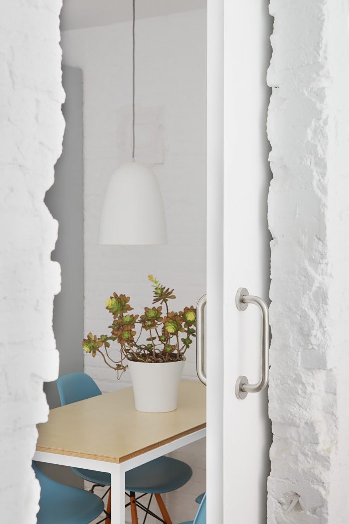 The clean modern lines of industrial parquet contrasts with the cracks and crevasses of the 19th century exposed brickwork. Frozen in time by a white oxidation, with the up-lit luminosity highlighting the buildings imperfections. Relaxed furniture pieces complete the experiment, combining a balance of woods, stone & metal structural elements. No one will say we didn't enjoy the journey... we hope the tenants do too!