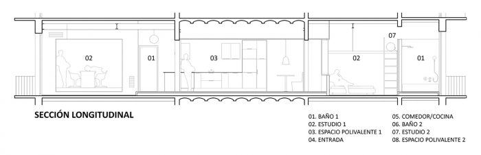 Salva46是我们对灵活共存的调查。探索21世纪的游牧生活方式。在这里,运动和流动性与隐私和稳定性形成对比。 这是一个关于共享微型生活的实验--两个同样平衡的空间由一个中央公共区域支撑着。在一个循规蹈矩的世界里,这是一场对立的游戏。