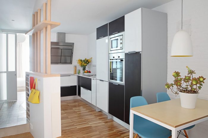 Ecology, restoration and up-cycling are all central to the theme, with the recovery and replacement of the original hydraulic mosaic tiles. The kitchen, which had a past life near Sitges, was adapted and re-used, complementing the rich patchwork of mosaic carpet and hydraulic perimeters.
