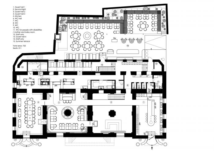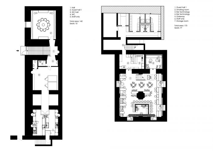 Solid brick walls and arc domes define the aesthetics of the venue. The designers just emphasized some authentic elements and created on their basis a new contemporary interior. They had to hide all engineering systems to manifest the unique character of the place. You can not see any wire or cable inside Samna’s halls.