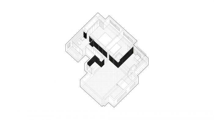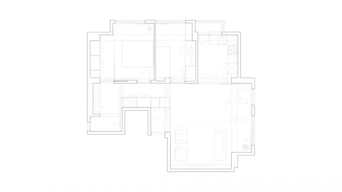 这所房子,在其以前的状态下,响应了一个没有什么兴趣的类型;非常隔断,小房间通过一个黑暗和狭窄的走廊组织起来。从物业规定的需要两间卧室的方案开始,我们选择了一个简单的策略:压缩服务空间和卧室以释放公共区域的空间。这样一来,房子的分布就被修改了,重新安置了厨房,使其成为新的客厅-餐厅的一部分。一个连续而明亮的角落空间得以实现,可以看到周围的风景。