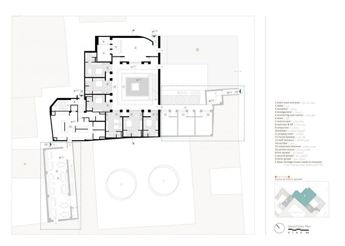 Wherever it finds a valuable structure, rehabilitates it, and wherever it finds a structure with no maintenance values or an urban land plot, it design and construct a building which is in interact with the context, perception the proportions, geometry and void and mass and tries to represent its era, like the surrounding historical monuments that represented the technology and needs of their time in connection with the context.