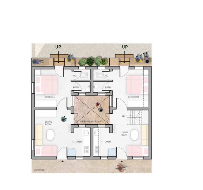 通过高度可复制的参与式规划和设计过程,Sanjaynagar的居民对所有规模的设计决策做出了贡献,从社区层面到个人住宅的定制。298个住宅单位被安排在8栋G+2楼。为了加强贫民窟的社会基础设施,这些建筑围绕着八个大小不一的院子。建成后,Sanjaynagar将成为一个功能齐全的社区,拥有所有必要的设施,包括供水、排水、道路、街道照明、儿童保育和社区中心、健康娱乐的庭院以及可食用的屋顶花园。在项目结束时,它将不再是一个贫民窟。