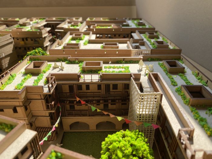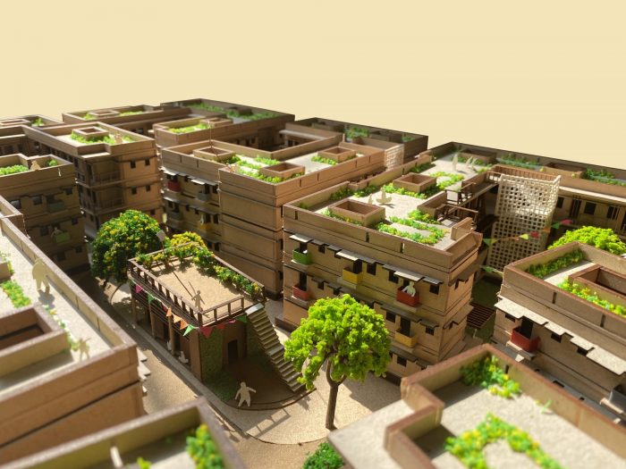 Through a highly replicable participatory planning and design process, the residents of Sanjaynagar have contributed to design decisions at all scales, from the neighborhood level to the customizations in their individual homes. The 298 dwelling units are organized into 8 G+2 buildings. To enhance the social infrastructure of the slum, the buildings are organized around eight courtyards of varying sizes. When completed, Sanjaynagar will be a fully functional neighborhood with all essential amenities including water, drainage, roads, street lighting, childcare and community centers, courtyards for healthy recreation, and edible rooftop gardens. At the end of the project, it will no longer be a slum.