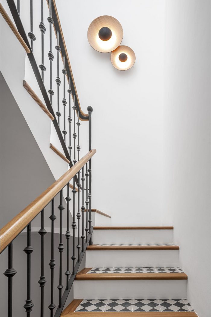 Palma de Mallorca’s historic center, a three-story building renovation in Carrer de Sant Magi balances recovery of the existing with a need for updating. Two luxury flats are located on the upper floors, while a coworking space occupies the ground floor.