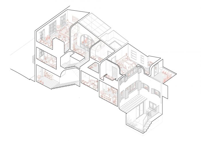 圣玛吉住房。为了加强当地遗产的传统形态,每个家庭空间都占据了一整个楼层。虽然它们有相似的特点,但公寓对建筑的亲密性表现出不同的程序化方法。一楼的公共区域被安排在小区的后面,面向天井,以获得宁静。相比之下,二楼公寓的公共空间面向Sant Magì的主要街道,而套房则俯瞰着天井。