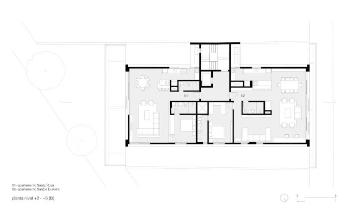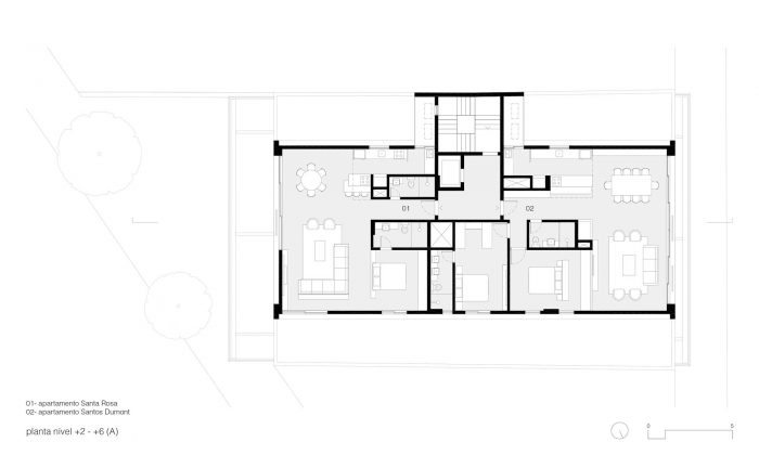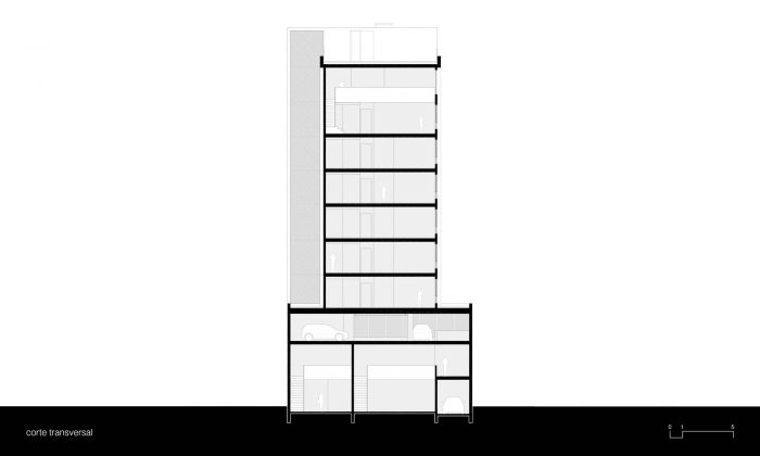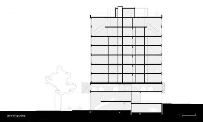 The challenge we took was precisely to develop a project for an apartment building able to generate a positive dynamic towards the city while offering a place to live that would not be assessed merely by means of square meters.